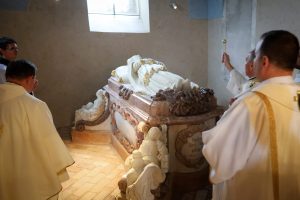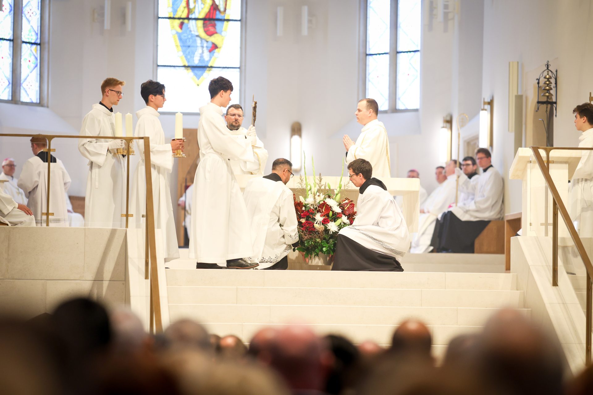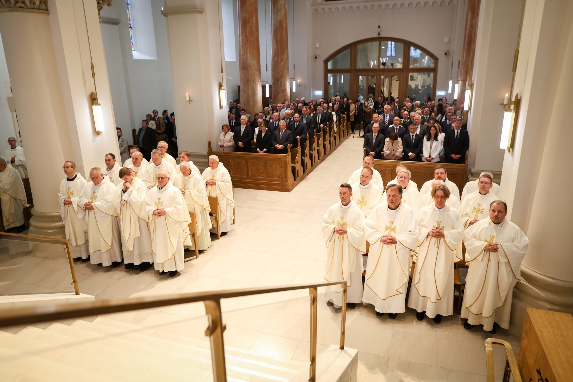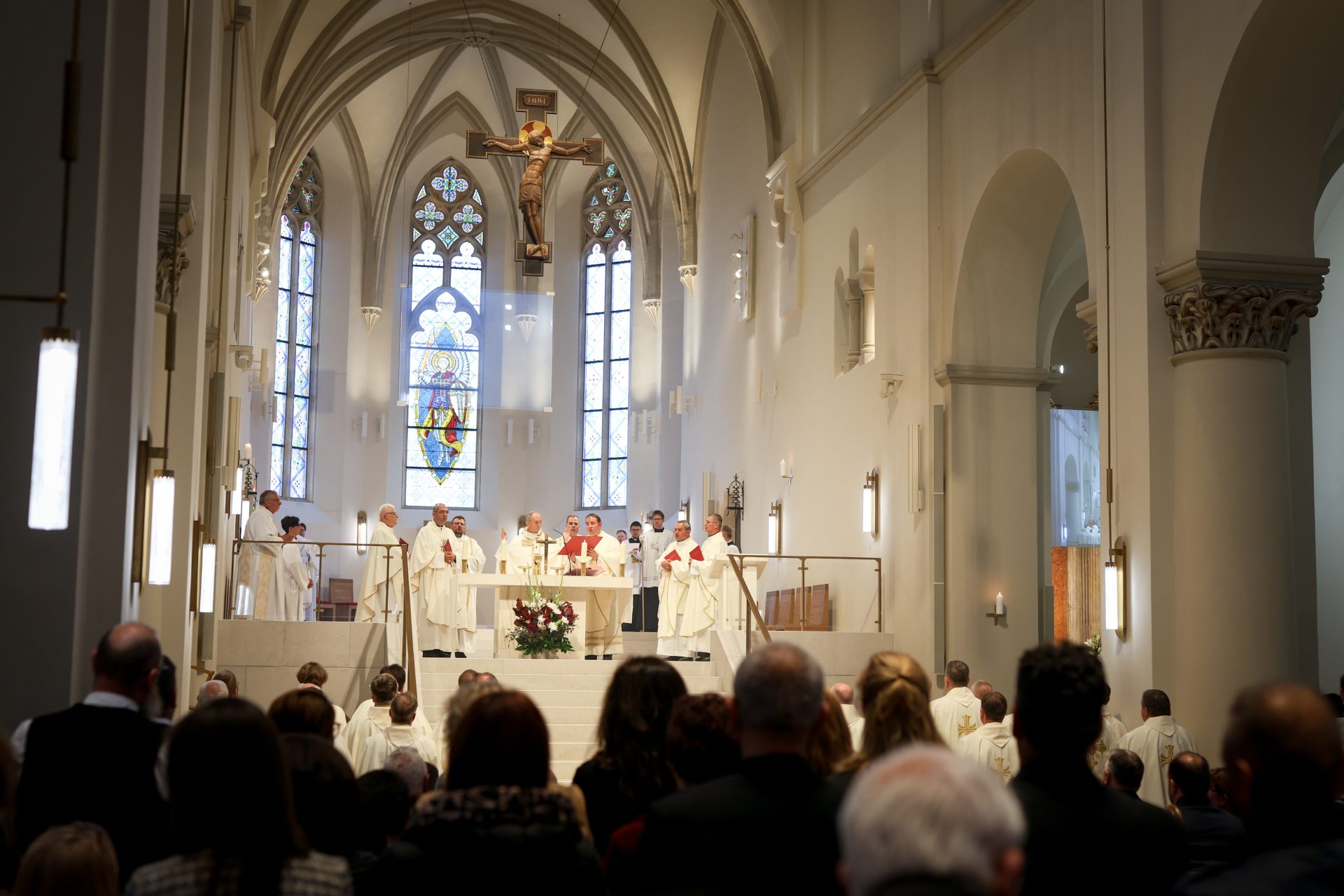 Udvardy György érsek atya a folytatásban a felszentelte a főtemplom új, ónixból készült szembemiséző oltárát, amely a templom 2023-as újranyitásakor már megáldásban részesült, és amelyben az első magyar szent család – Szent István király, Boldog Gizella királyné és Szent Imre herceg – ereklyéi nyugszanak.