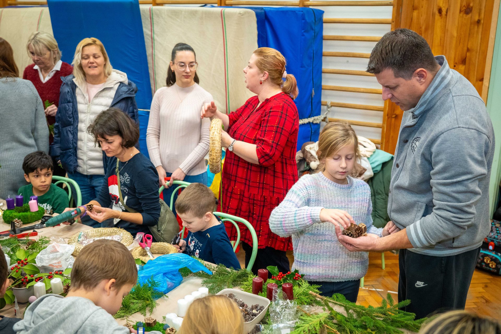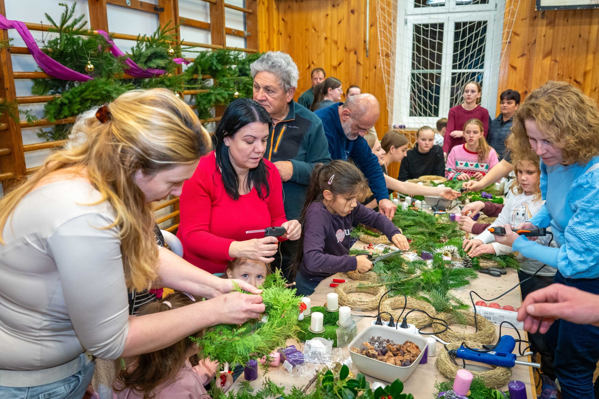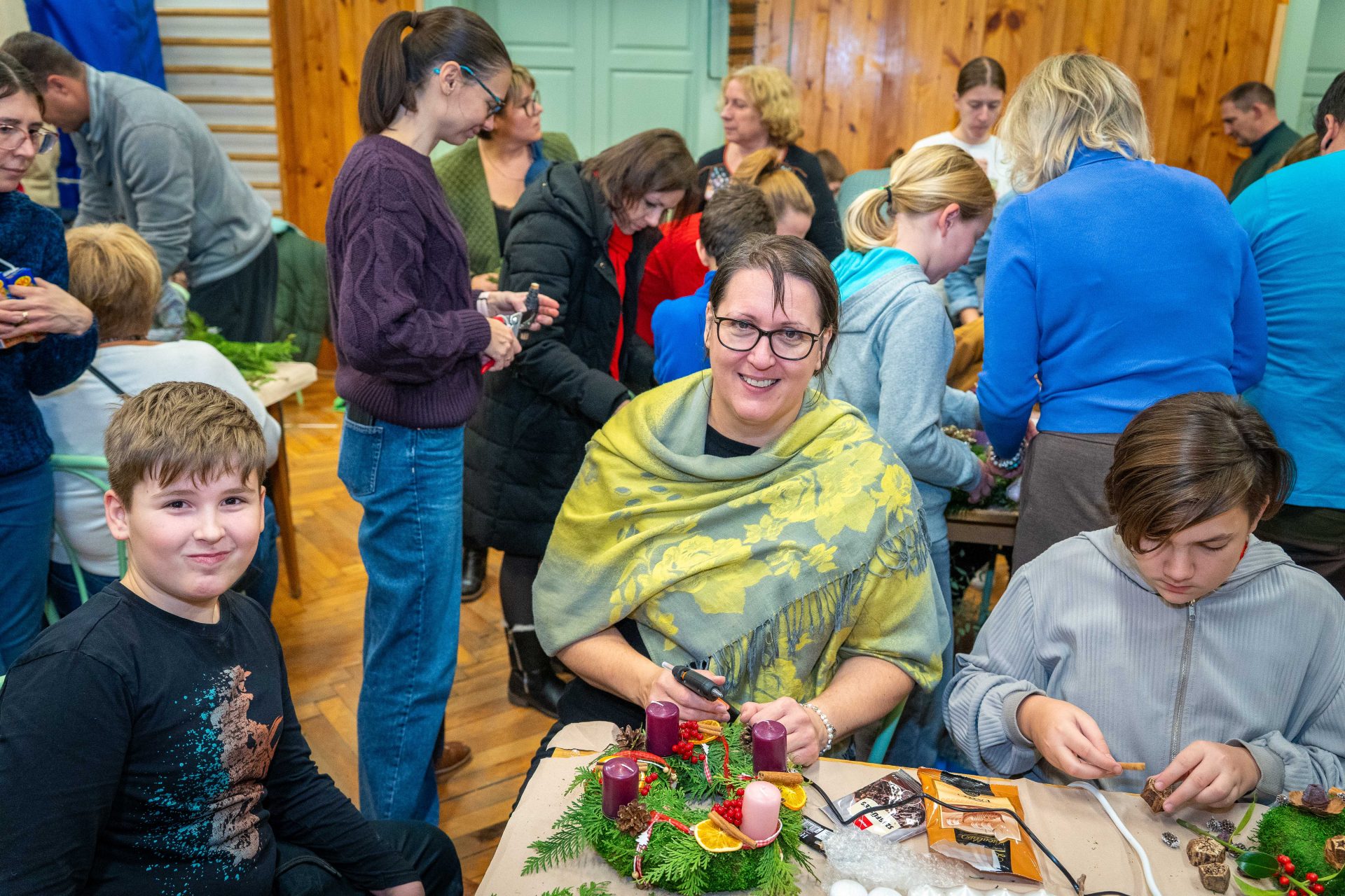 A megnyitót követően adventi koszorúkészítésre és kézműves foglalkozásra került sor, ahol a résztvevők családias, szeretetteljes légkörben készíthették el az ünnepi időszak jelképeit. A közös munka során számos értékes beszélgetés, örömteli találkozás és egymás felé forduló figyelem gazdagította a délutánt.