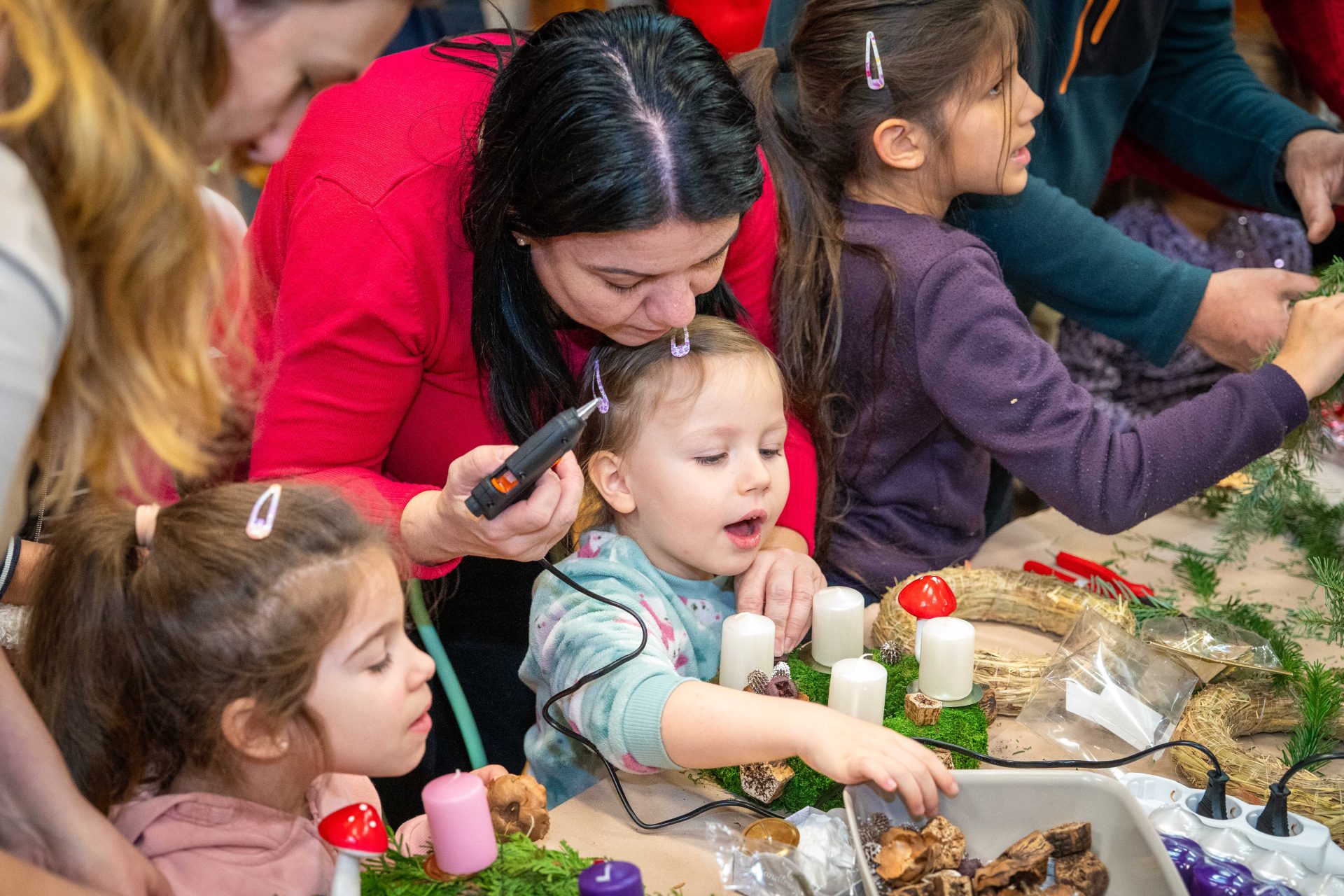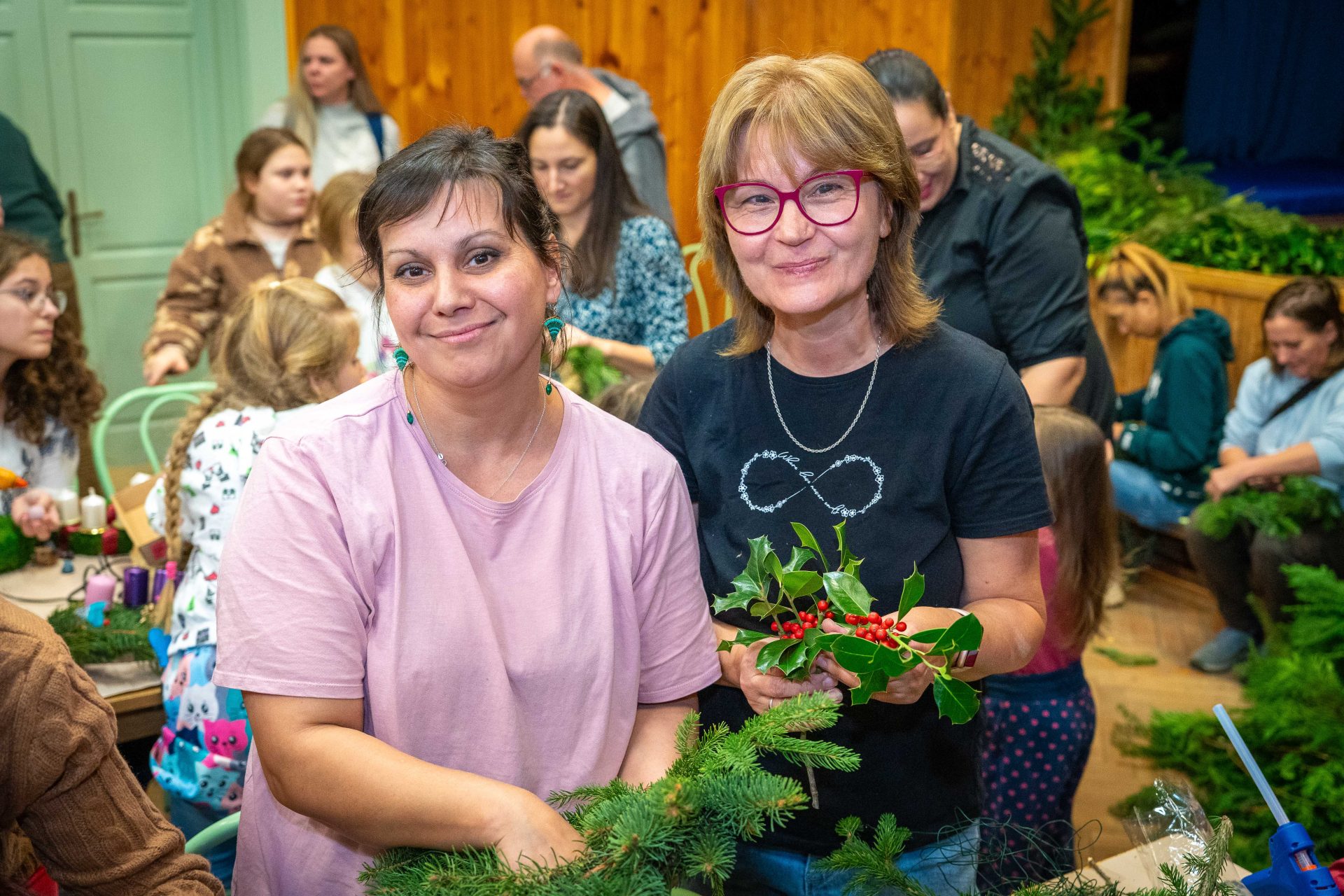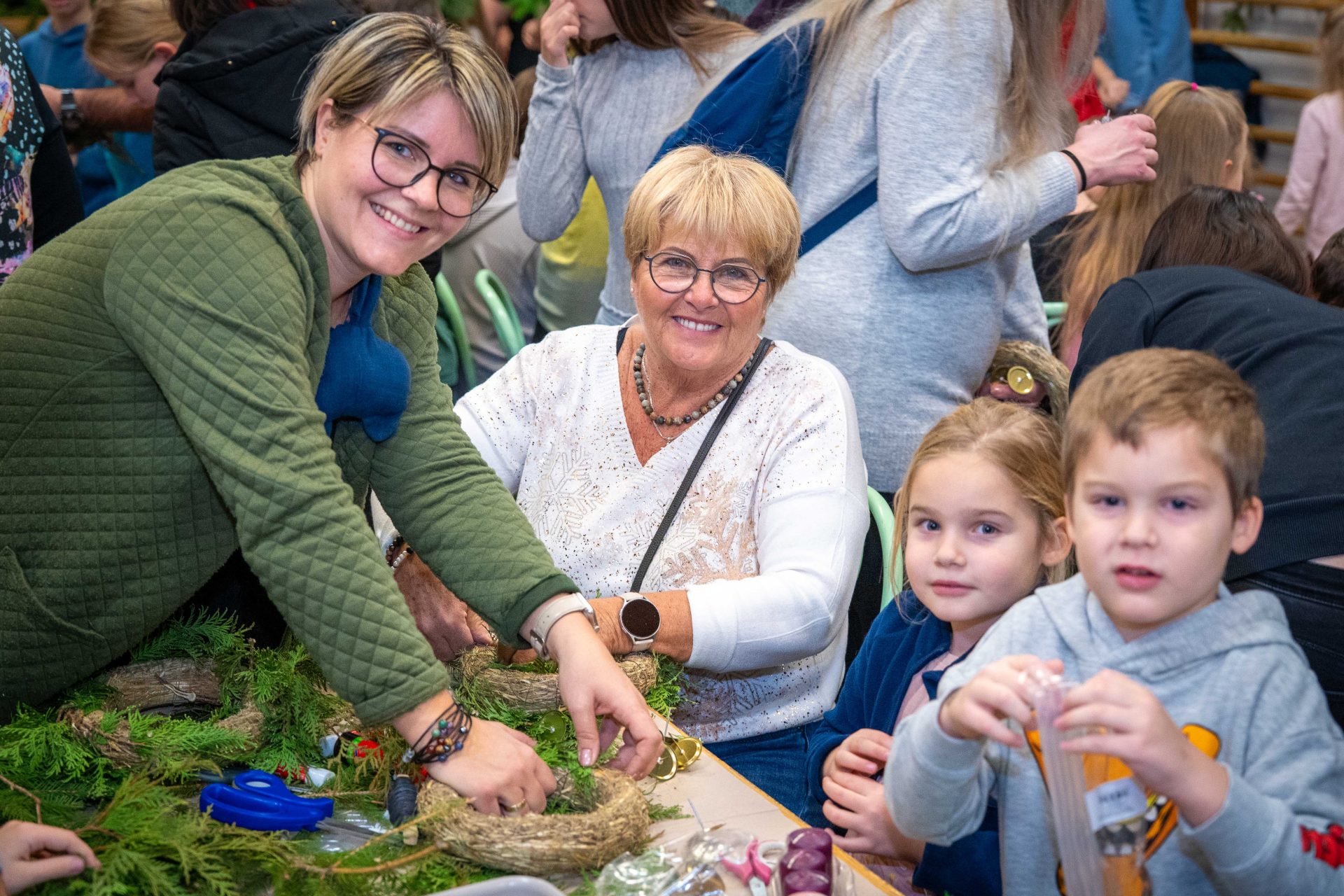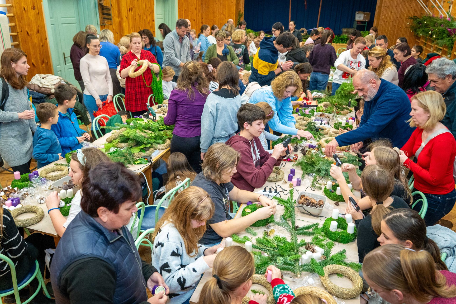 A megnyitót követően adventi koszorúkészítésre és kézműves foglalkozásra került sor, ahol a résztvevők családias, szeretetteljes légkörben készíthették el az ünnepi időszak jelképeit. A közös munka során számos értékes beszélgetés, örömteli találkozás és egymás felé forduló figyelem gazdagította a délutánt.