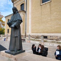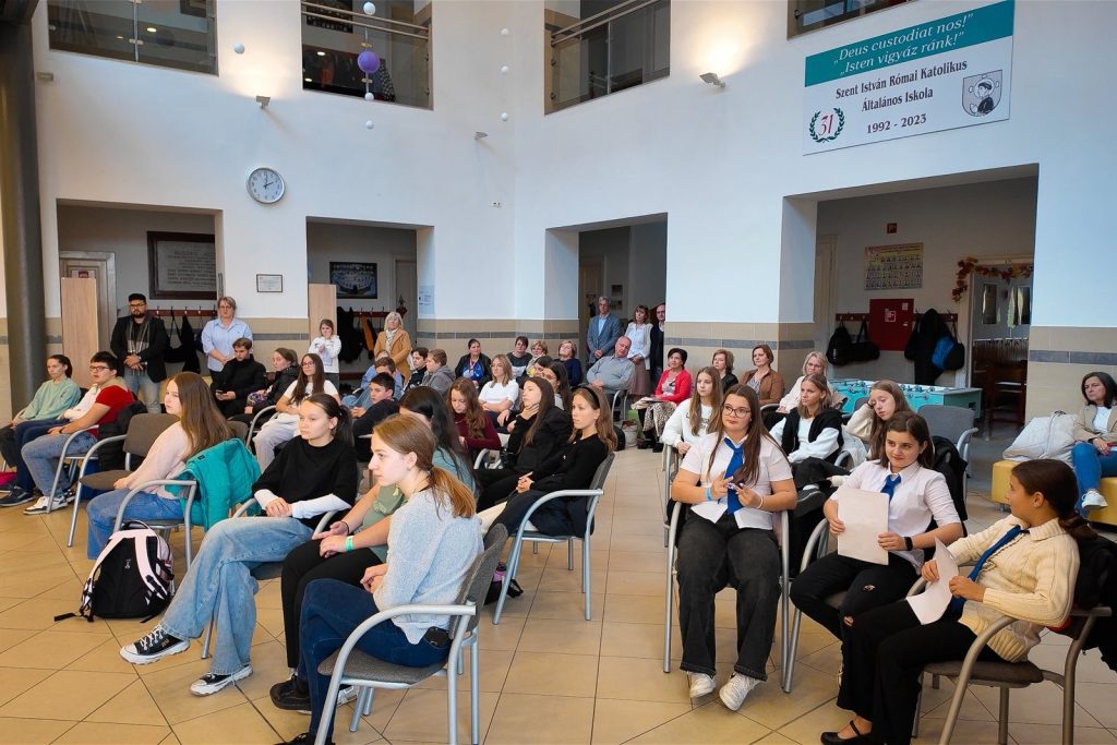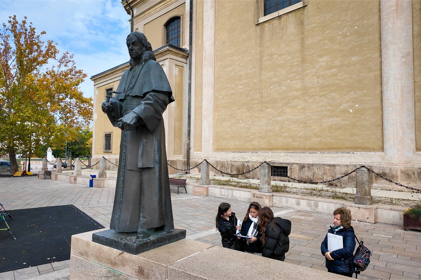 A pápai belváros ezen a délutánon diákok lelkes csoportjaival telt meg: a Szent István Római Katolikus Általános Iskola „Templom és Iskola” vetélkedőjének résztvevői járták a várost, hogy a gróf Eszterházy Károly 300. születésének emlékéhez kapcsolódó feladatokat oldjanak meg.