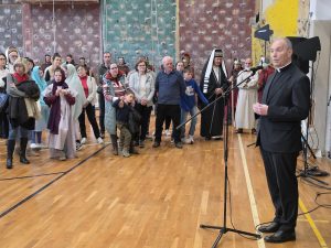 A különösen zord, viharos időjárás miatt az utolsó pillanatokban kellett új helyszínt találni a virágvasárnapi misztériumjáték számára. A szervezők gyors reagálásának és a Padányi Keresztény Iskola vezetésének köszönhetően azonban néhány óra alatt megszülettek a feltételek ahhoz, hogy a közösség együtt élhesse át a nagyhét kezdetének egyik legmélyebb lelki eseményét.