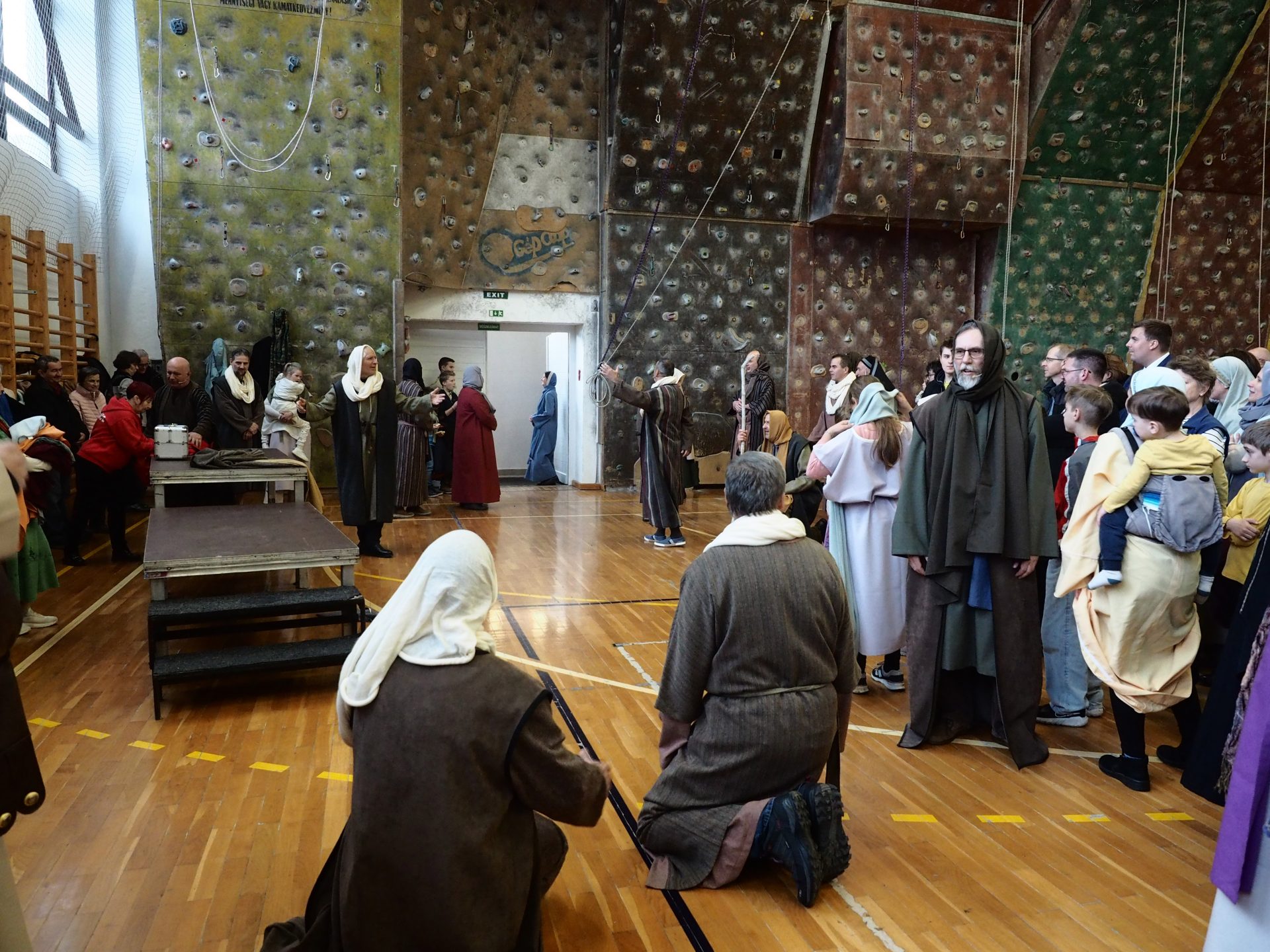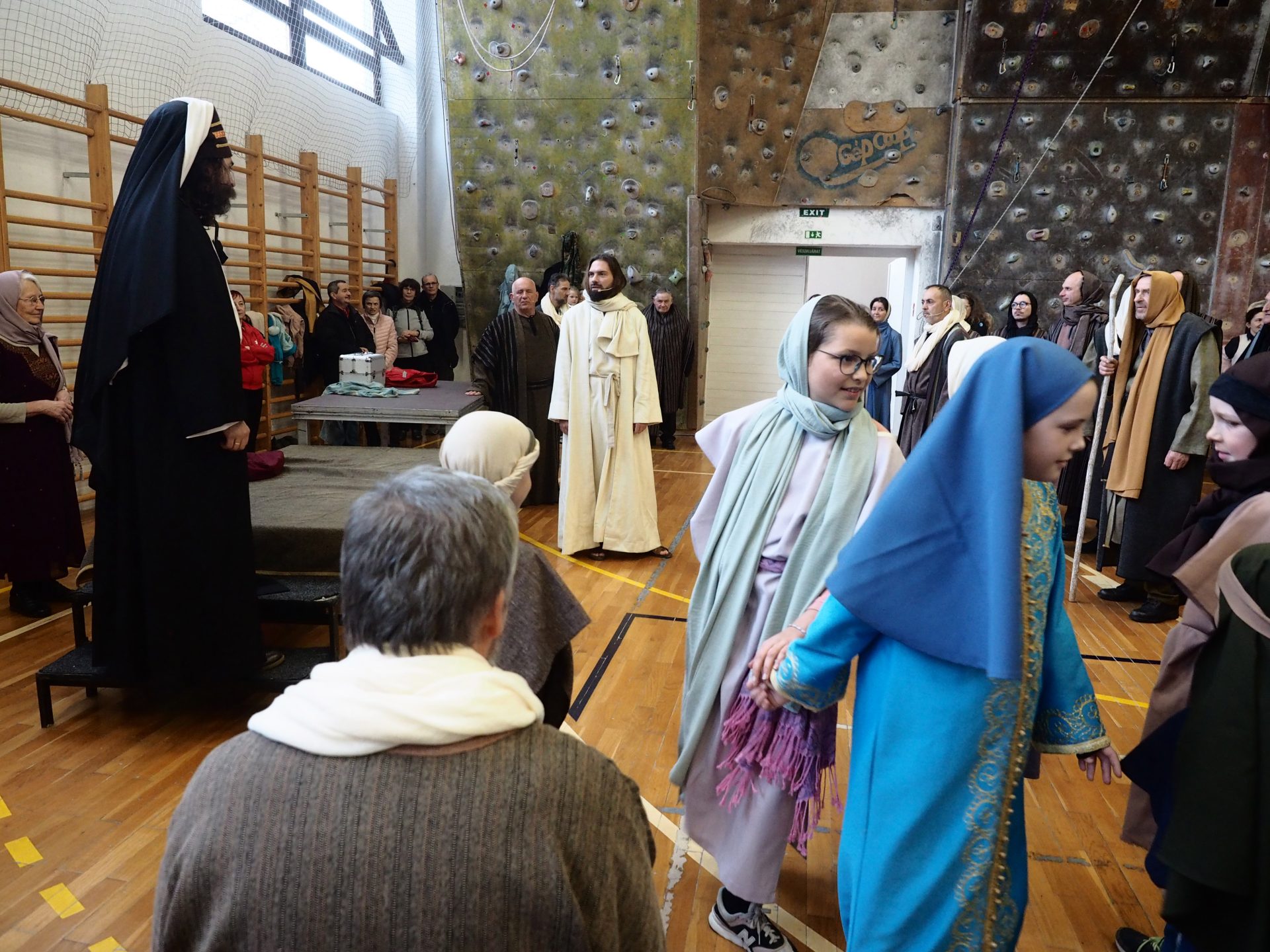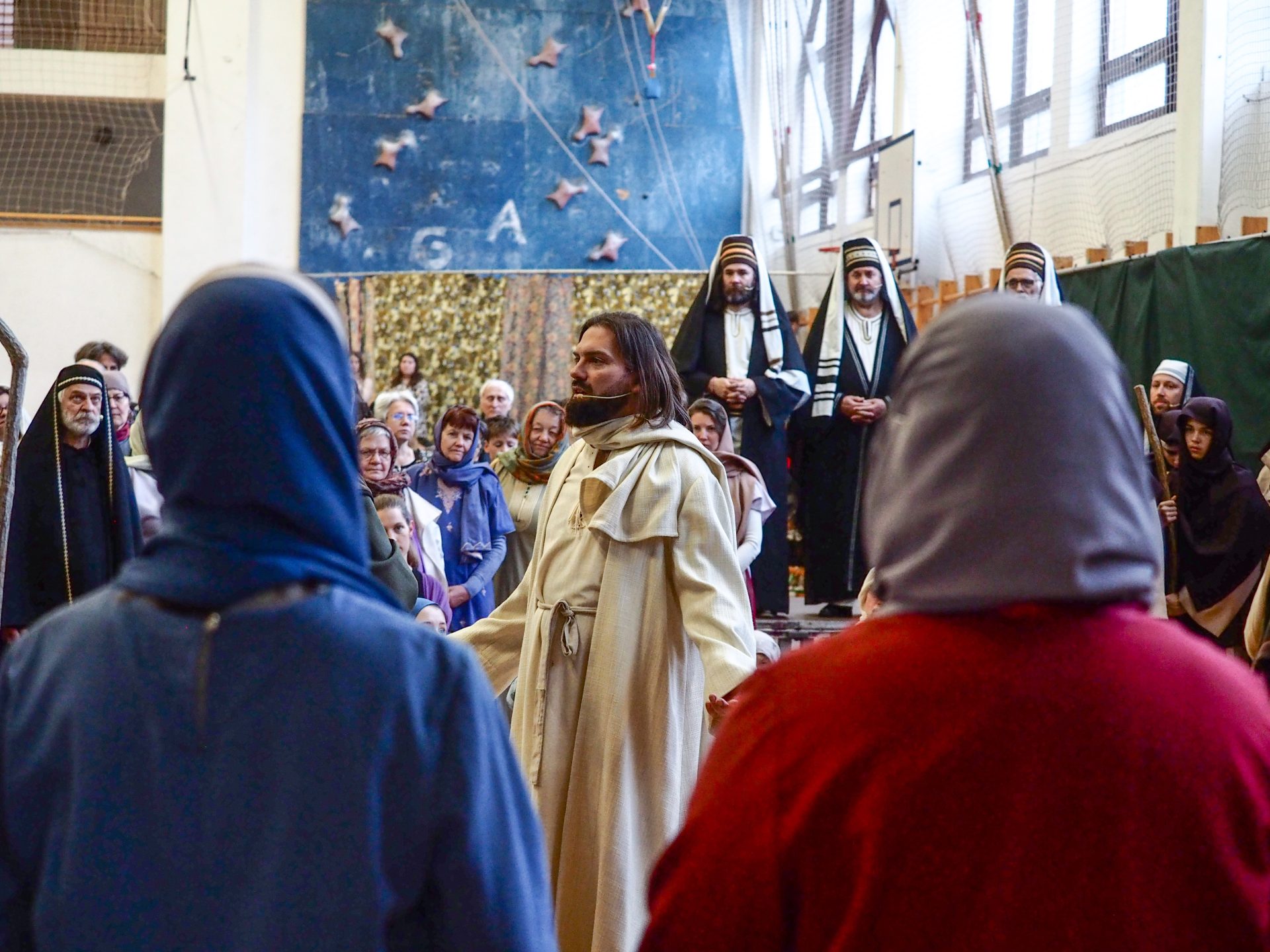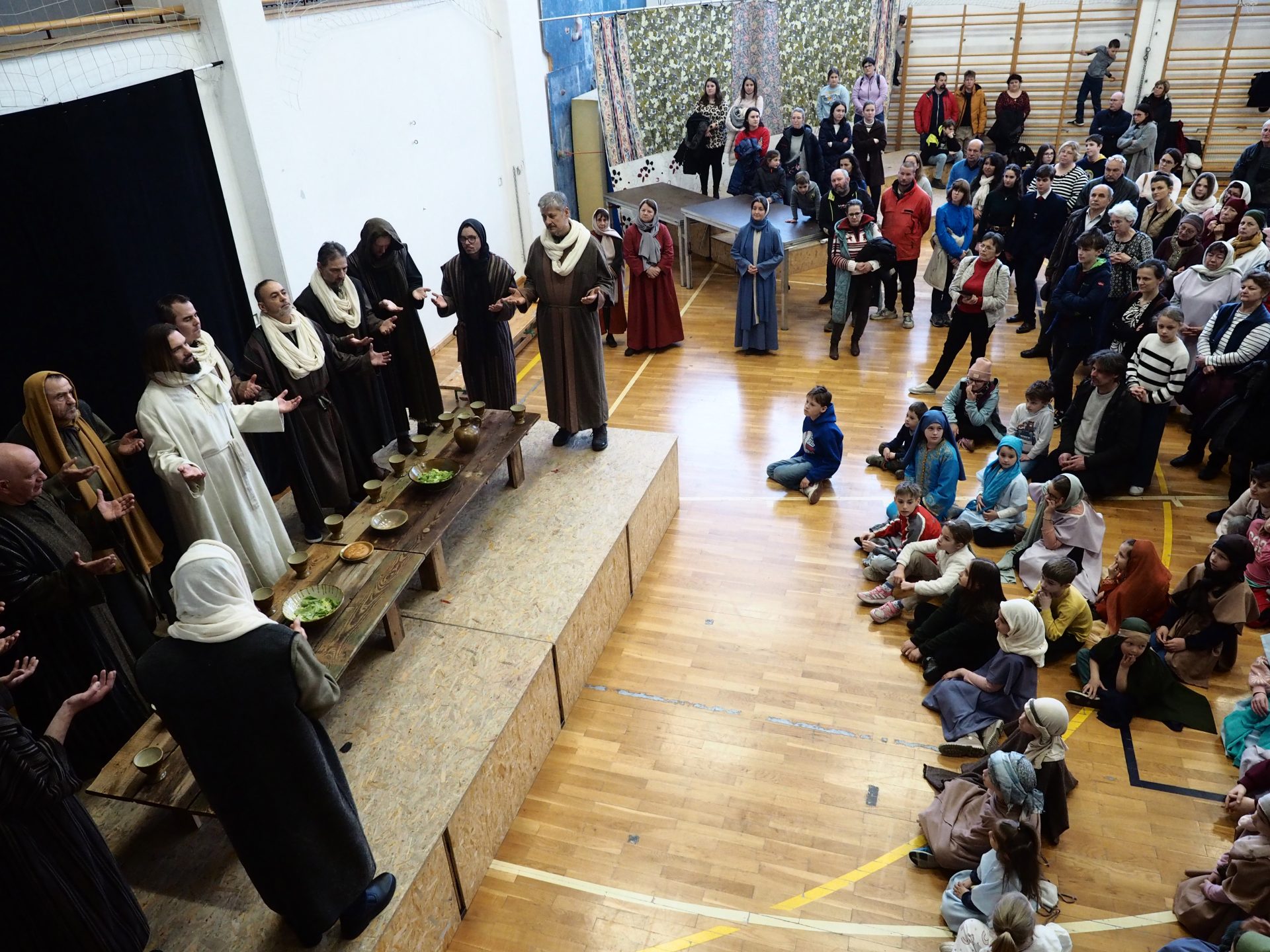 A különösen zord, viharos időjárás miatt az utolsó pillanatokban kellett új helyszínt találni a virágvasárnapi misztériumjáték számára. A szervezők gyors reagálásának és a Padányi Keresztény Iskola vezetésének köszönhetően azonban néhány óra alatt megszülettek a feltételek ahhoz, hogy a közösség együtt élhesse át a nagyhét kezdetének egyik legmélyebb lelki eseményét.
