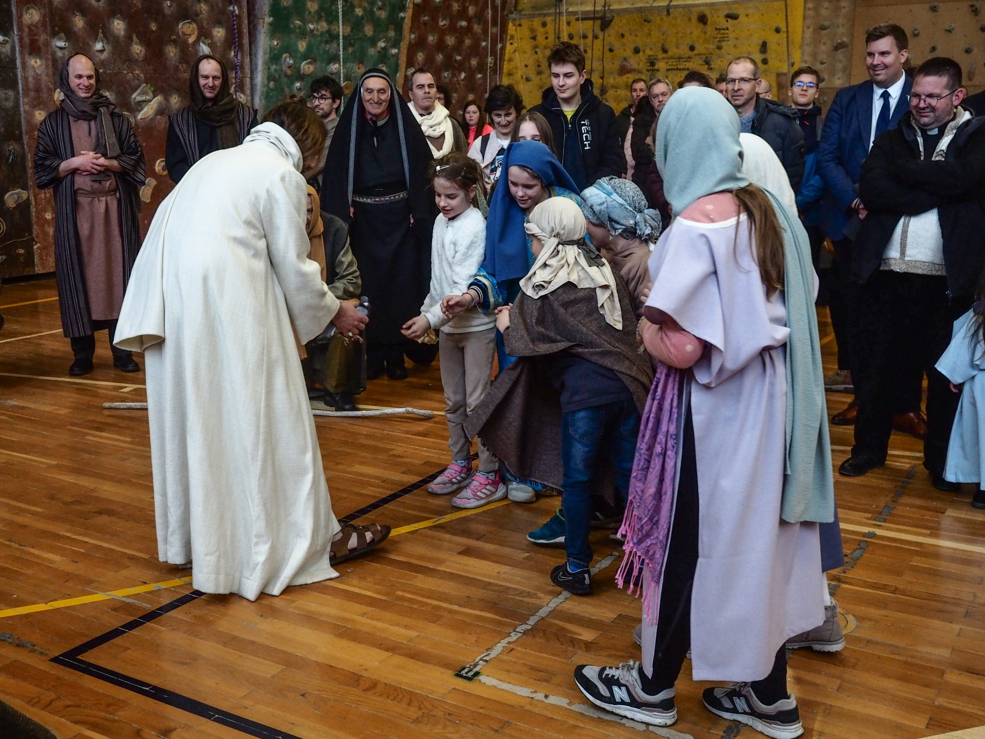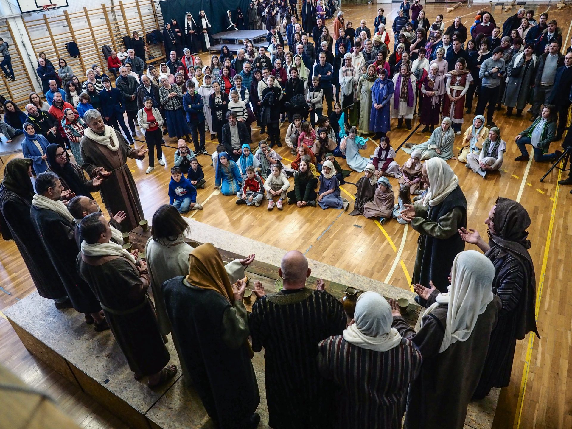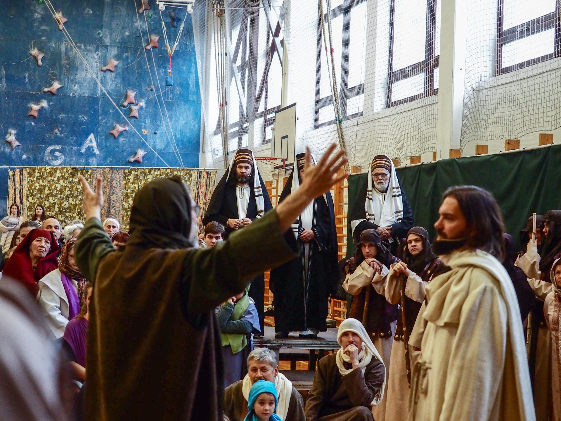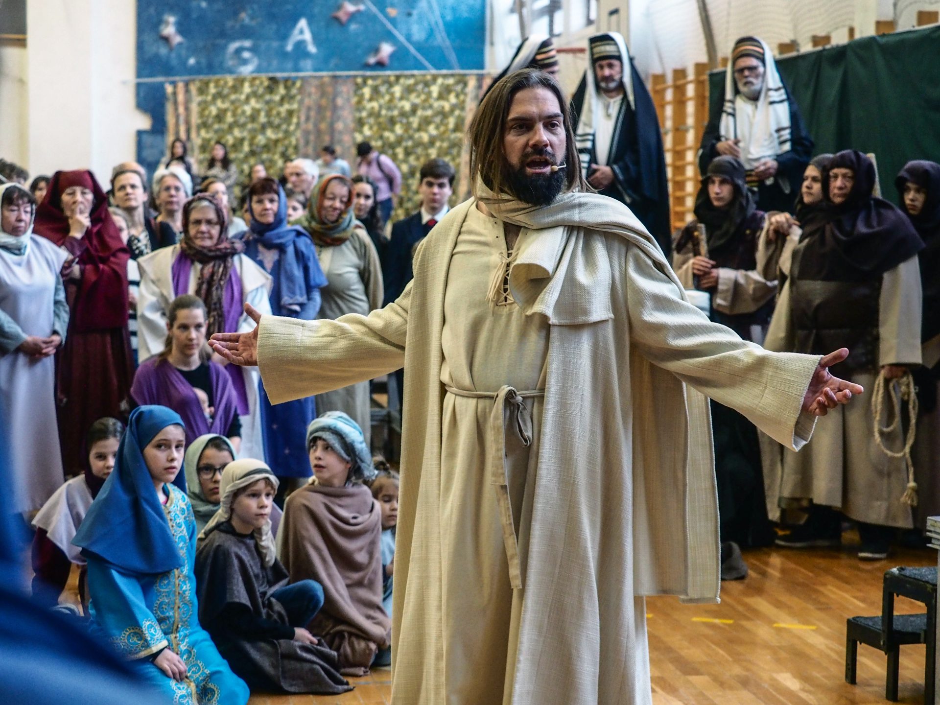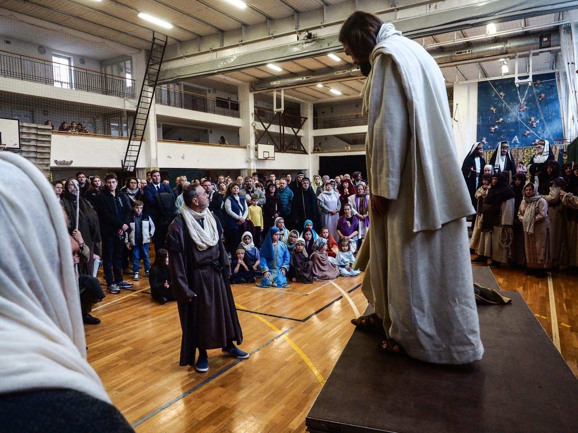 A különösen zord, viharos időjárás miatt az utolsó pillanatokban kellett új helyszínt találni a virágvasárnapi misztériumjáték számára. A szervezők gyors reagálásának és a Padányi Keresztény Iskola vezetésének köszönhetően azonban néhány óra alatt megszülettek a feltételek ahhoz, hogy a közösség együtt élhesse át a nagyhét kezdetének egyik legmélyebb lelki eseményét.