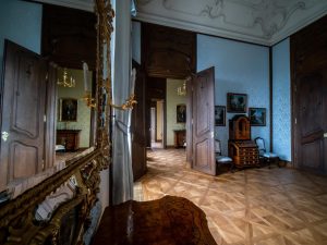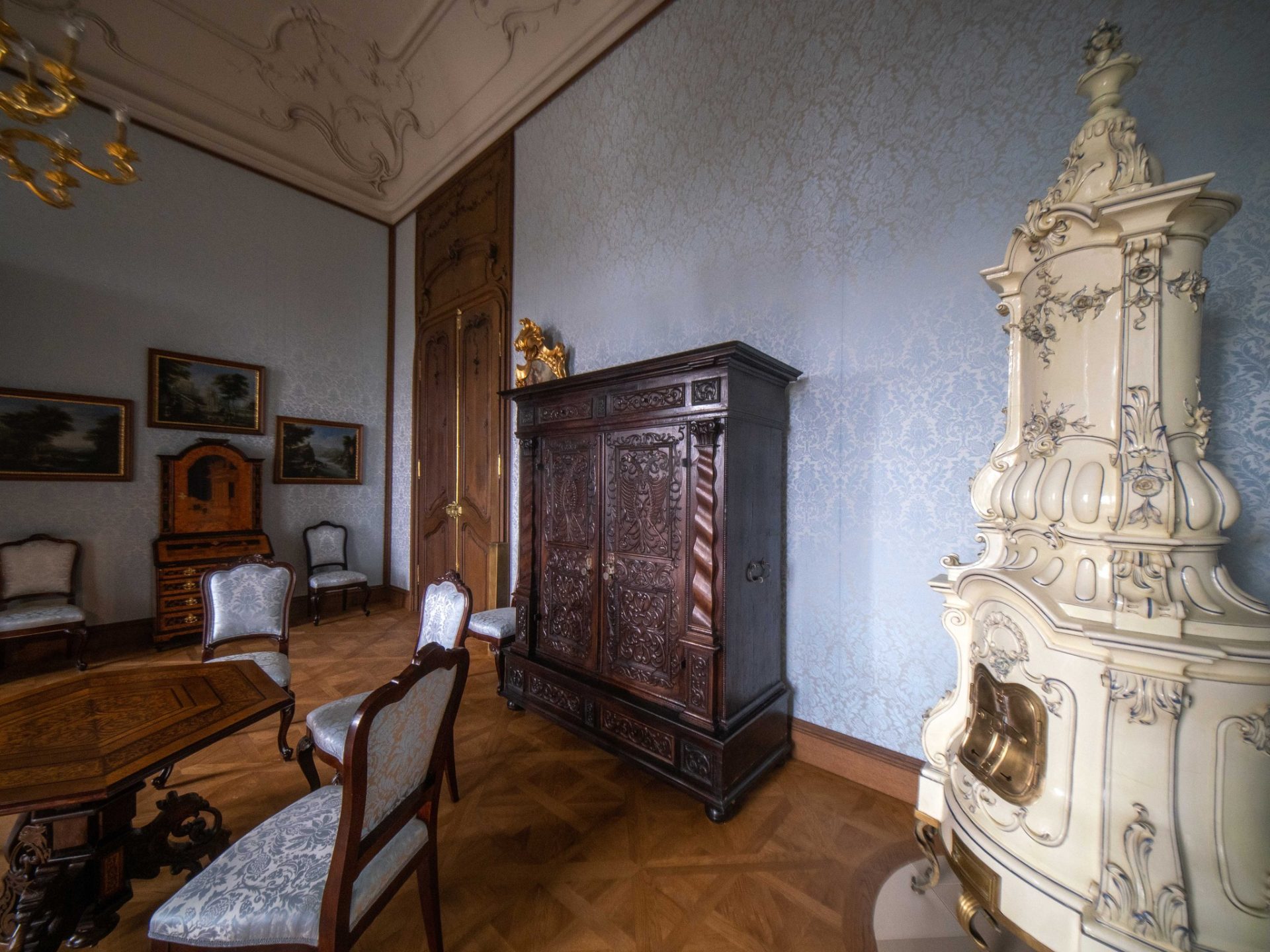 Történeti enteriőr, nem „múzeum-díszlet”: a palota saját bútoraival és eredeti műtárgyaival berendezve látogatható. A termek folyamatosan gazdagodnak, ahogy elkészülnek az újabb restaurálások, új képek és bútorok állnak helyükre — ezért is érdemes visszatérni.