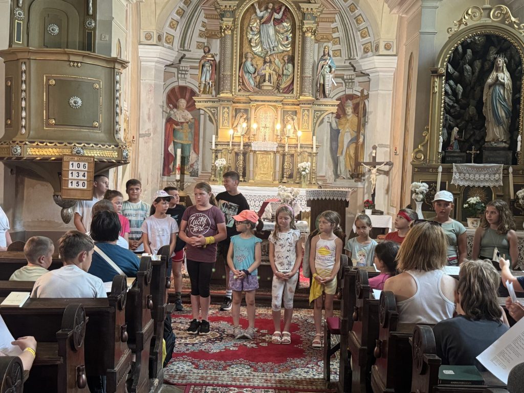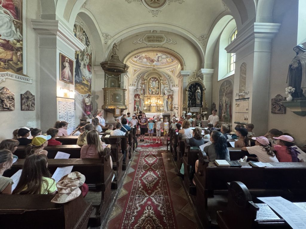 Bódi Mária Magdolna nyomába eredtek a nemesvámosi plébánián évtizedek óta hagyományos napközis tábor idei első napján az óvodások és kisiskolások. A tábornyitó szentmisét e különleges alkalommal a köveskáli templomban tartották, majd átgyalogoltak Szentbékkálára azt az utat járva, amit Magdi is oly sokszor végigjárt szentmisére menet.