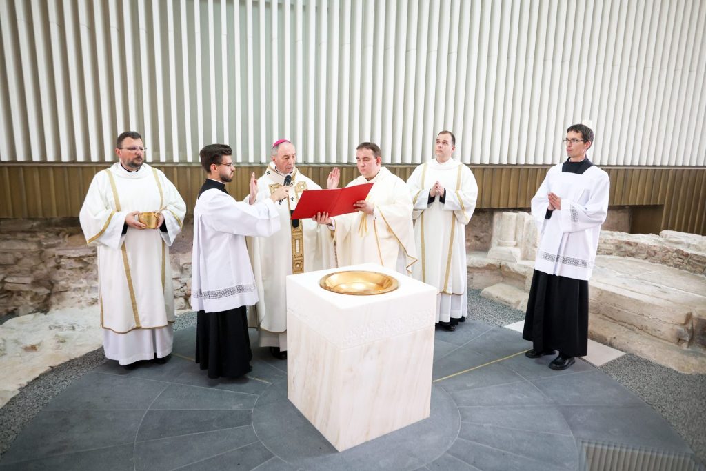 Történelmi pillanat a Szent Mihály Főszékesegyház újraszentelésének napján. A Szent Mihály Főszékesegyház újraszentelésének ünnepi napján különleges, eseményre került sor: több száz év után ismét keresztelést tartottak a Szent György-kápolnában.