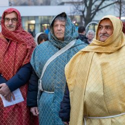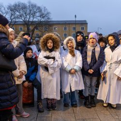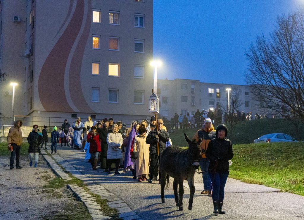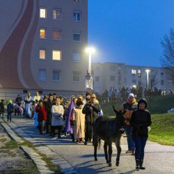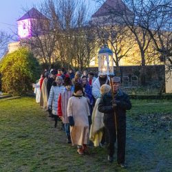 A Thury-vár előtt korabeli jelmezekben gyülekeztek az élő betlehemes séta résztvevői Várpalotán, hogy idén is közösen jelenítsék meg Jézus Krisztus születésének történetét.